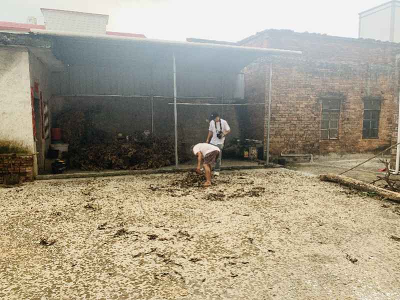 小闲的家。下起雨之后,爷爷在紧急收起用于点火做菜的枯树枝。